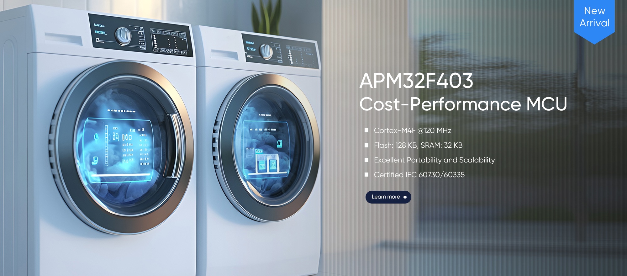 The APM32F403 series is a cost-effective MCU featuring powerful real-time processing, high integration, and low power consumption. Operating at up to 120 MHz, it integrates 128KB Flash and 32KB SRAM, making it ideal for applications such as EV charging stations, BMS, encoders, barcode scanners, gaming peripherals, HVAC controllers, and smart home appliances.
