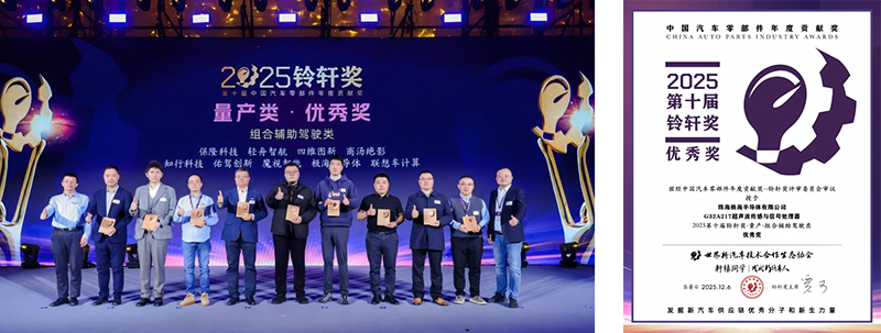 2025年12月6日晚,中国汽车零部件年度贡献奖——第十届铃轩奖颁奖典礼在苏州盛大举行。极海AK2超声波传感和信号处理器G32A217再获殊荣,斩获本届“量产·组合辅助驾驶类优秀奖”