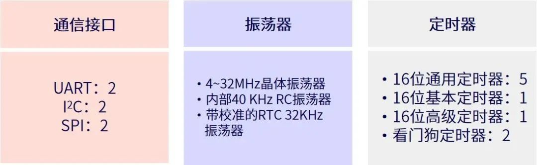 ·电压范围2.0V ~3.6V,内置上电复位、掉电复位以及可配置的电压监测模块,可保障输出电压在不同工作条件下保持恒定状态。