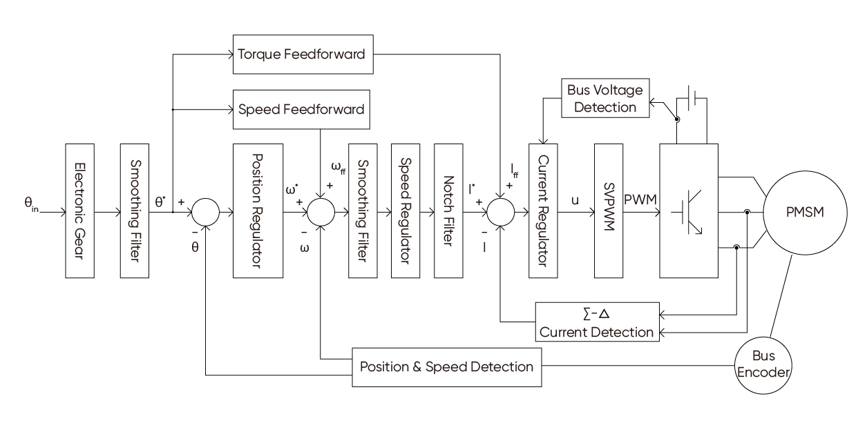 · Position Loop: Defines external pulse signals, bus, or I/O control, with position feedback from the external bus encoder.