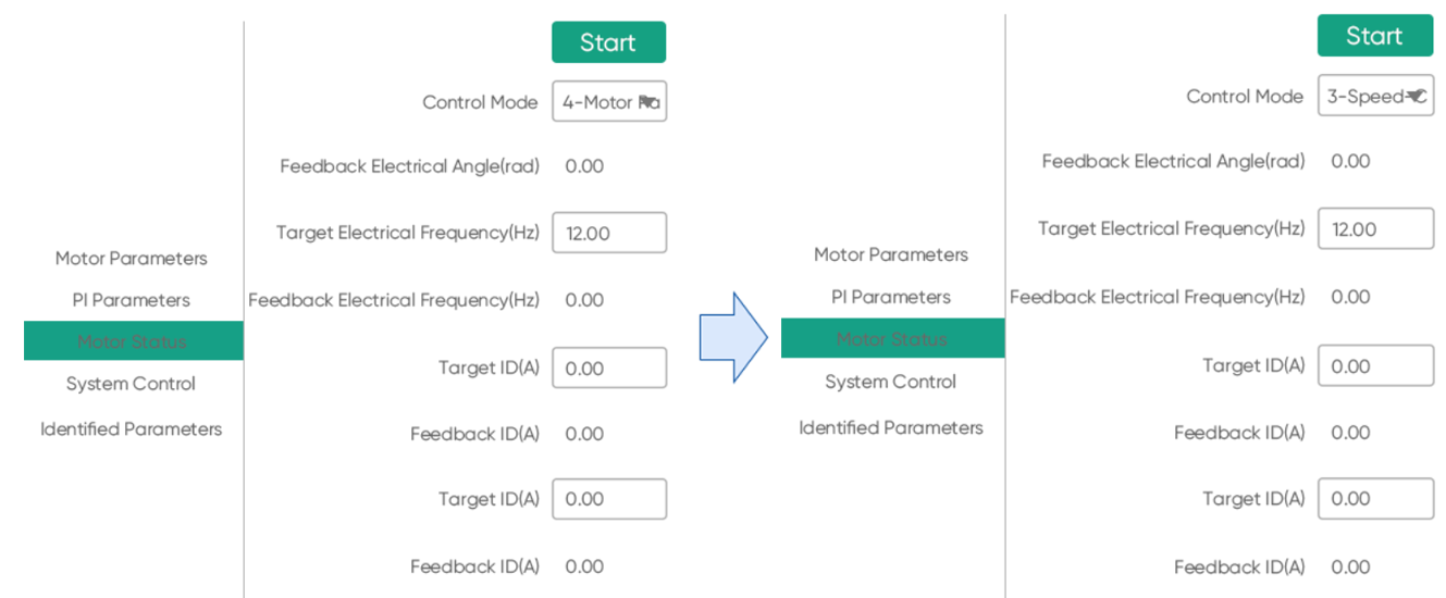 Set protection and identification parameters→Begin motor parameter identification→Start speed closed-loop control